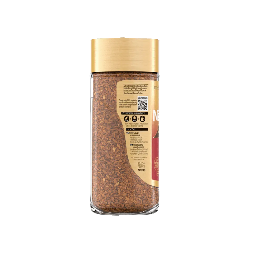 NESCAFÉ® Gold Decaf - our signature blend of medium roasted coffee, but without any of the caffeine. Sit back and relax with this carefully crafted blend and discover its perfectly balanced flavour: not too mild. Not too intense. Just right - for every moment.