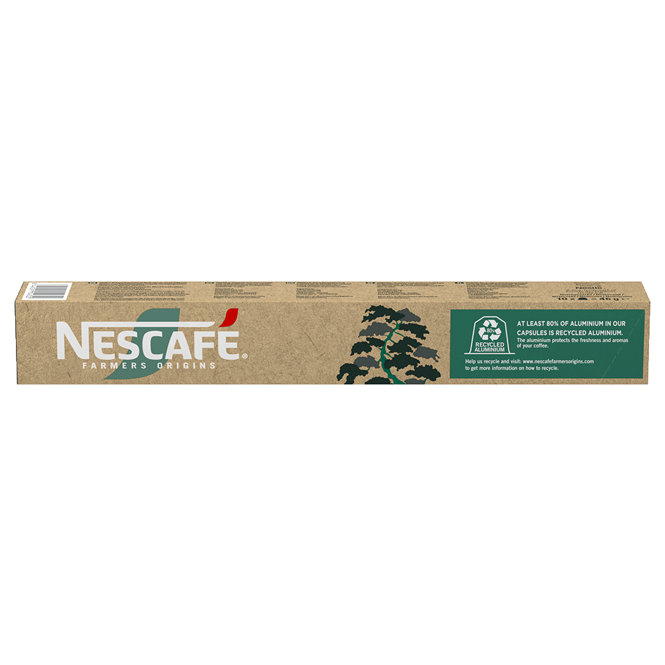 After brewing your NESCAFÉ® Farmers Origins South Asia Espresso coffee capsule in your Nespresso® machine, you'll notice its signature strong roasted character and coffee intensity of 12--making it the most intense from the NESCAFÉ® Farmsers Origins range. A dark and smoky short cup delivering all-out intensity.