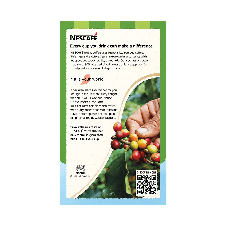 Indulge in the ultimate nutty delight with NESCAFÉ Hazelnut Praline Gelato-Inspired Iced Latte! This iced latte combines rich coffee with nutty nodes of hazelnut praline, offering an extra-indulgent delight inspired by Gelato flavours. If you like this, try our NESCAFÉ® Cookie Dough Iced Latte too!