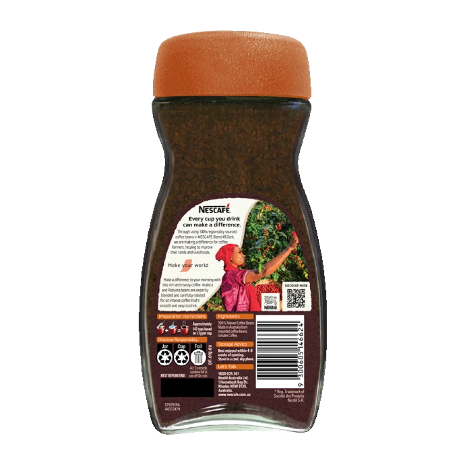 NESCAFÉ® BLEND 43 contains between 50mg and 90 mg per 2g serve