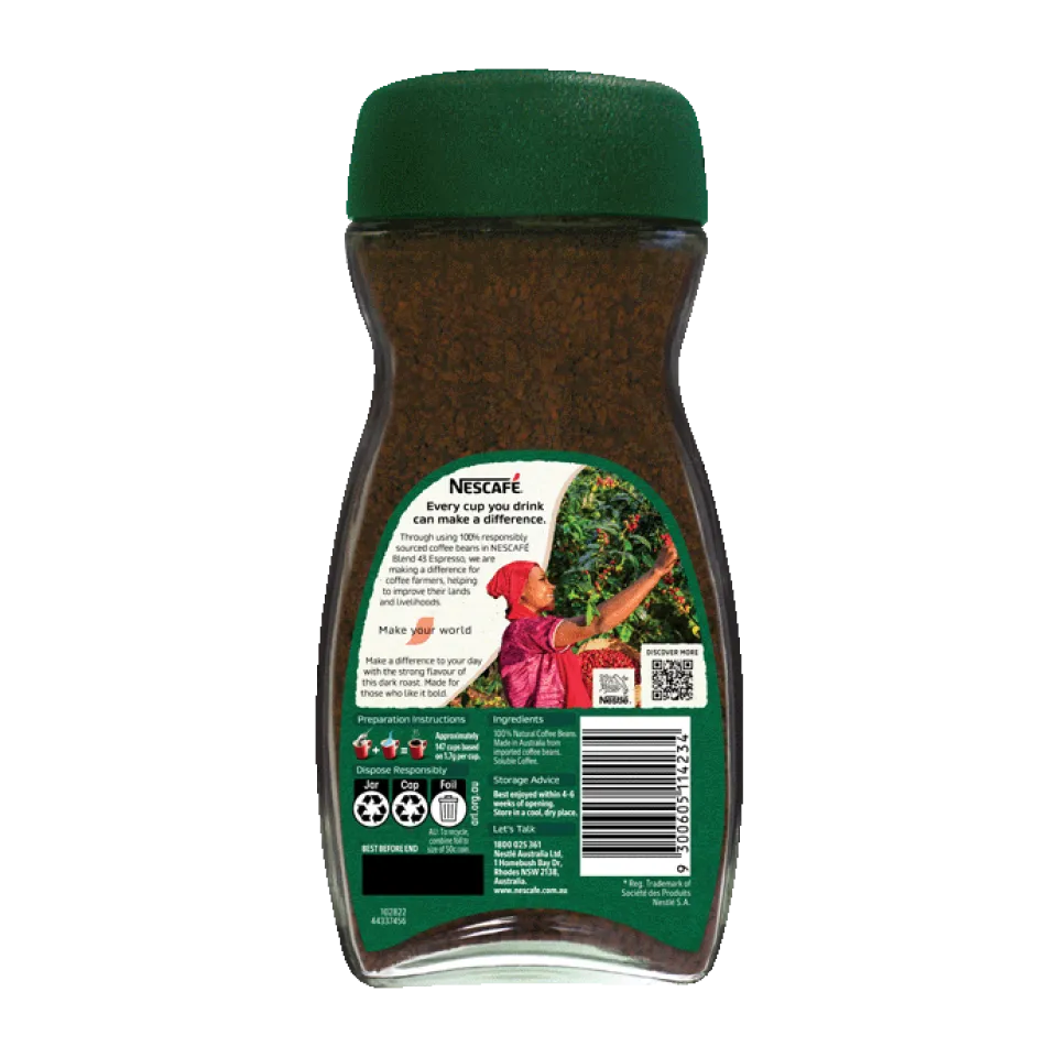 NESCAFÉ® BLEND 43 contains between 50mg and 90 mg per 2g serve.