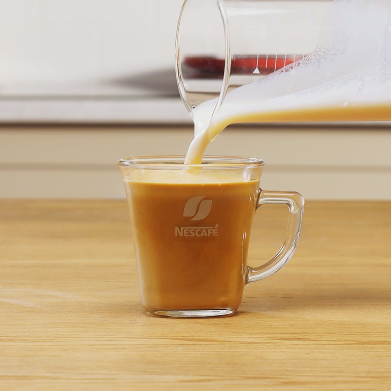 Įpilkite į 200 ml talpos puodelį 2 šaukštelius NESCAFÉ® Gold ir 60 ml karšto vandens.