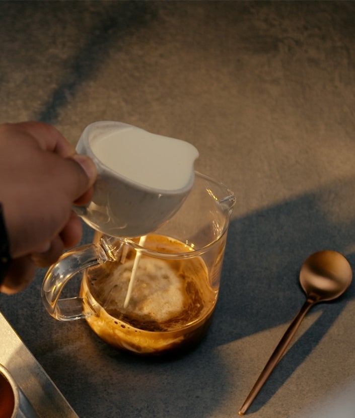 Mélangez 2 cuillères à café de NESCAFÉ® GOLD Espresso et 60 ml d'eau chaude, chauffée à 80°C.