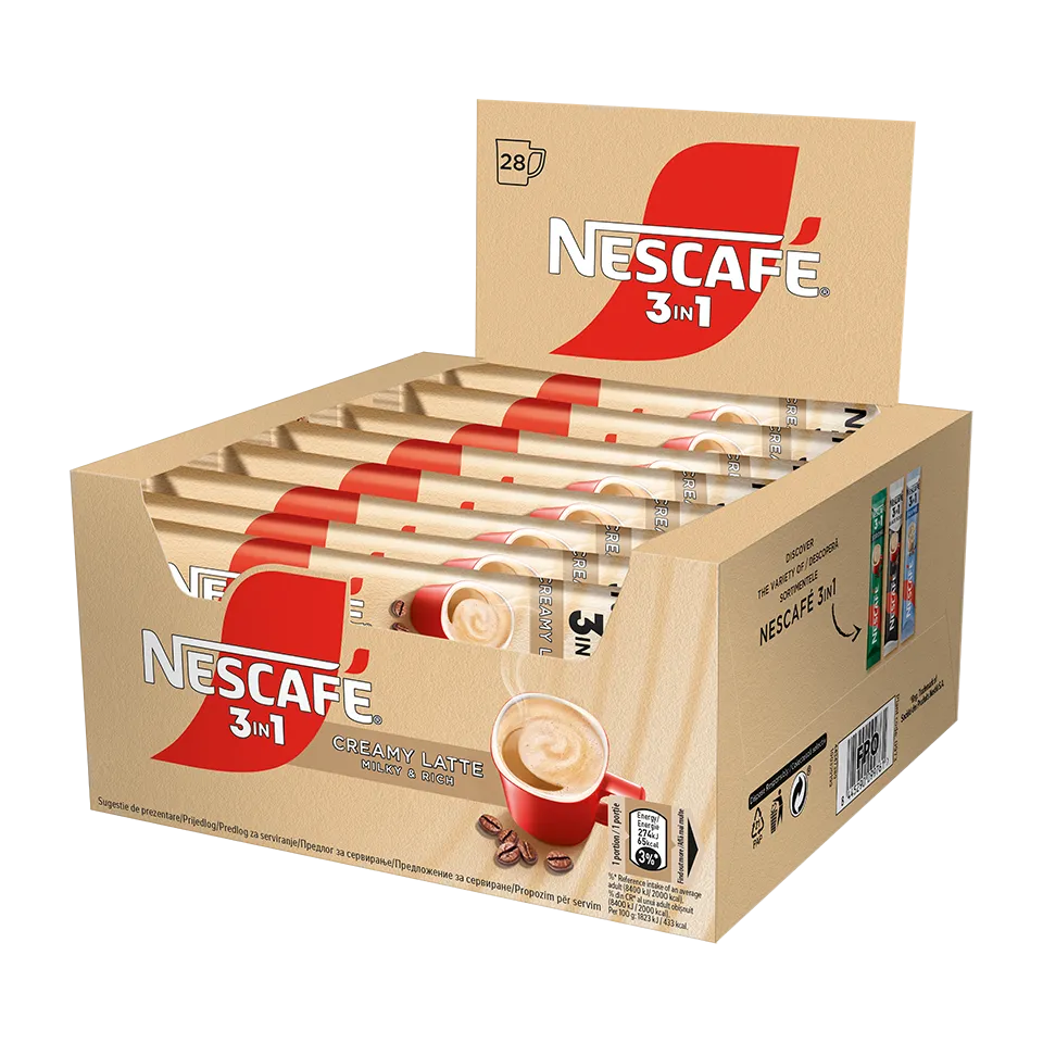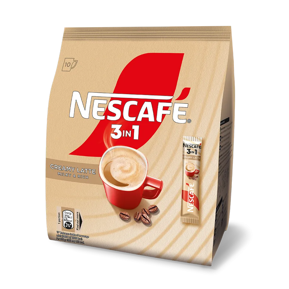 Опитай новото NESCAFÉ 3in1 Creamy Latte – вкусна чаша кафе с богат млечен вкус и нежен каймак! Рецепта, вдъхновена от „coffee shop” културата и емблематичнoто café latte. Приготви си сам чаша изкусително лате само за секунди. Всяко пакетче NESCAFÉ 3in1 Creamy Latte ти дава същия неповторим вкус – комбинация от ароматно кафе, мляко и нежна сладост. Трябва ти само малко гореща вода за да се отпуснеш и да се насладиш на момента.