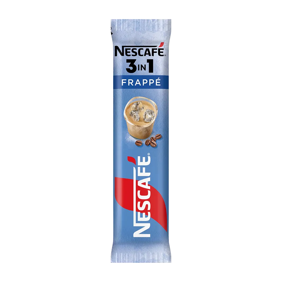 NESCAFÉ® 3in1 Frappé е супер лесна за приготвяне фрапе напитка – грабни стикче, разтвори със студена вода и само добави лед по желание за наистина фрапиращо кафе изживяване!