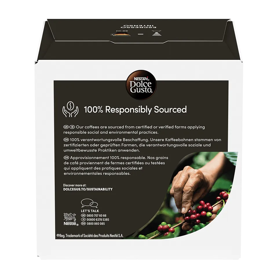 L'Espresso Intenso NESCAFÉ® Dolce Gusto® est le fruit d'un parfait équilibre entre des grains provenant de deux côtés de la planète. Les grains d'Arabica de Colombie et les grains de Robusta du Vietnam s'unissent en harmonie pour créer un espresso spectaculaire d'une intensité revigorante.
