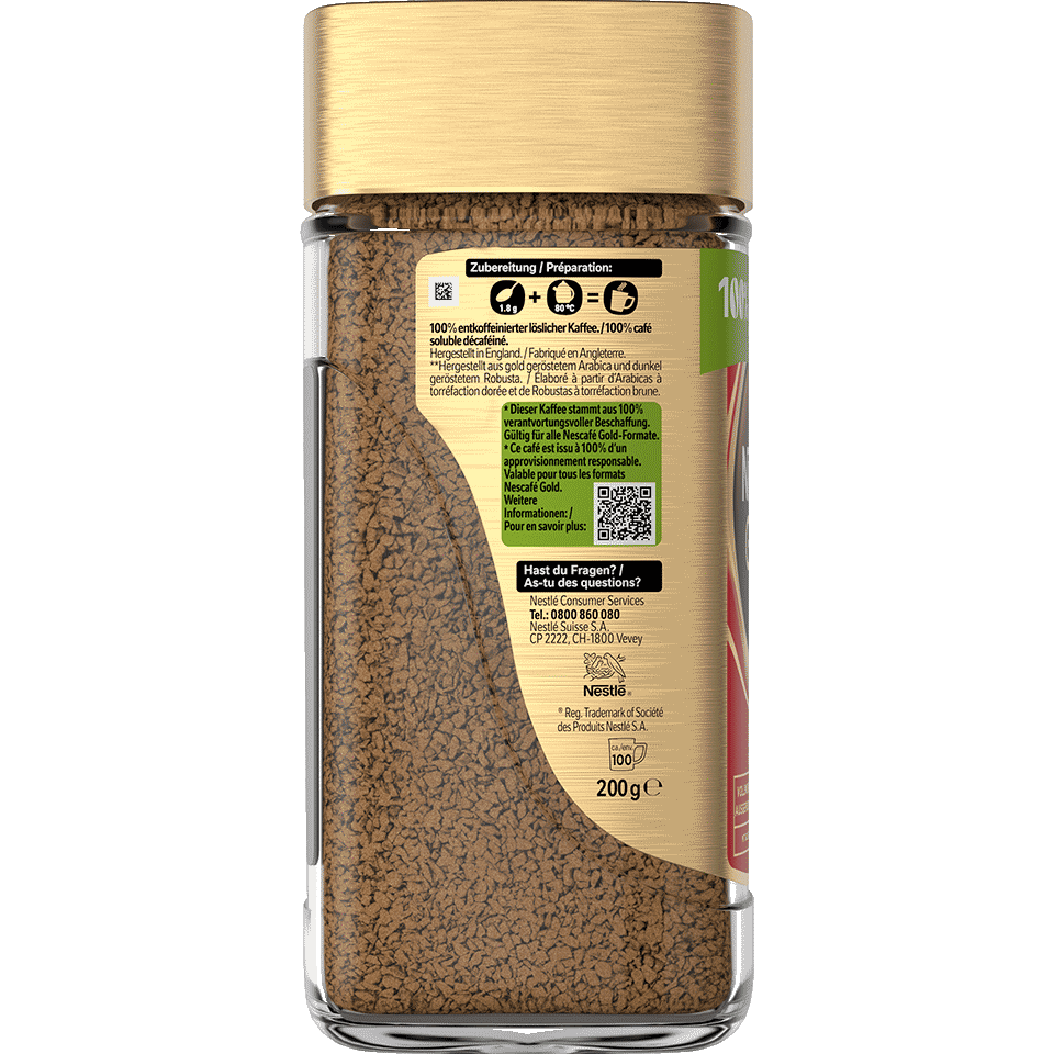 NESCAFÉ® Gold Decaf – notre assemblage de café signature moyennement torréfié, sans caféine. Installez-vous confortablement et détendez-vous en dégustant ce mélange soigneusement élaboré, et découvrez sa saveur parfaitement équilibrée : ni trop douce, ni trop corsée. Tout simplement parfaite, à tout moment de la journée.