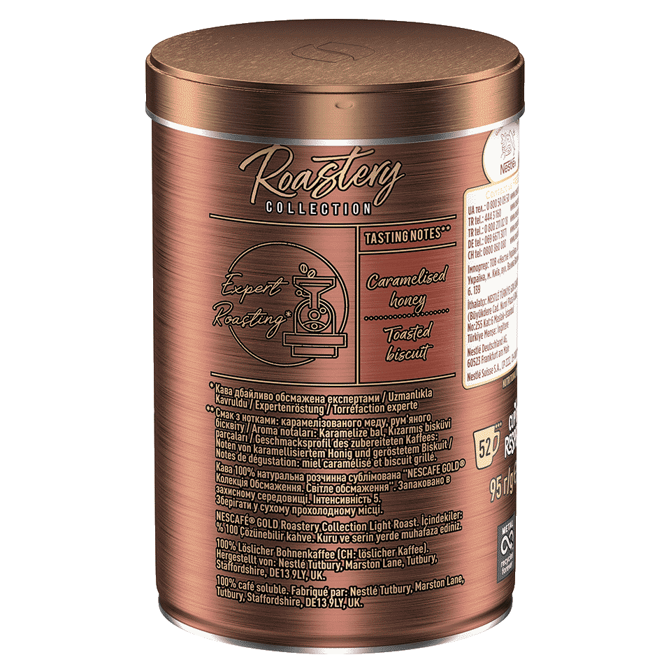 Goûtez à la saveur inégalée du café torréfié par lots avec NESCAFÉ® Gold Roastery Light Roast. Un café de luxe torréfié à la main par nos maîtres torréfacteurs pour créer une expérience sensorielle supérieure. Avec des notes de miel riche et caramélisé associées à des biscuits grillés, pour un final doux et velouté.