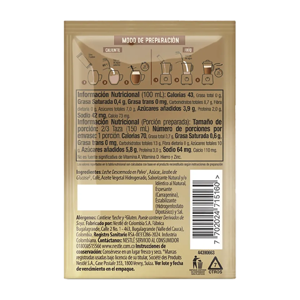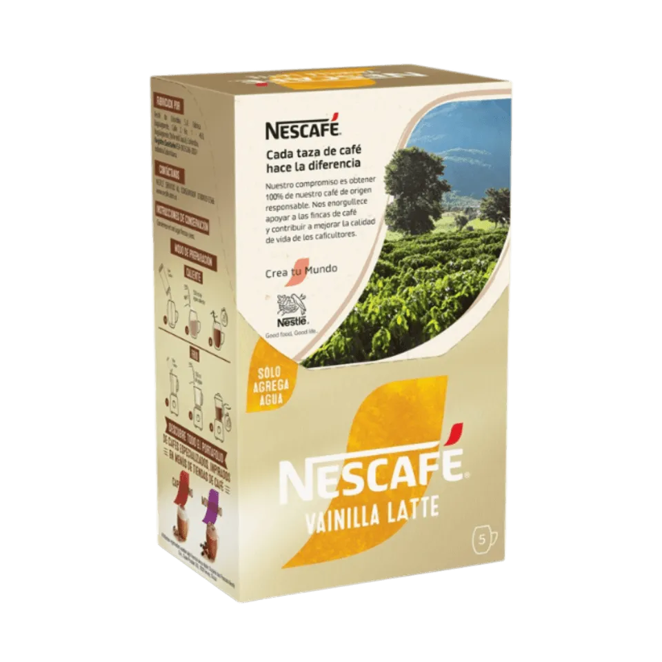 NESCAFÉ® Vainilla Latte es una mezcla instantánea de café soluble con leche y un delicado sabor a vainilla que crea una bebida tipo latte espumosa y cremosa con un toque dulce. A diferencia de los cafés negros tradicionales, este latte combina la suavidad de la leche y vainilla con la intensidad del café para ofrecer una experiencia tipo cafetería en casa o en la oficina en segundos.