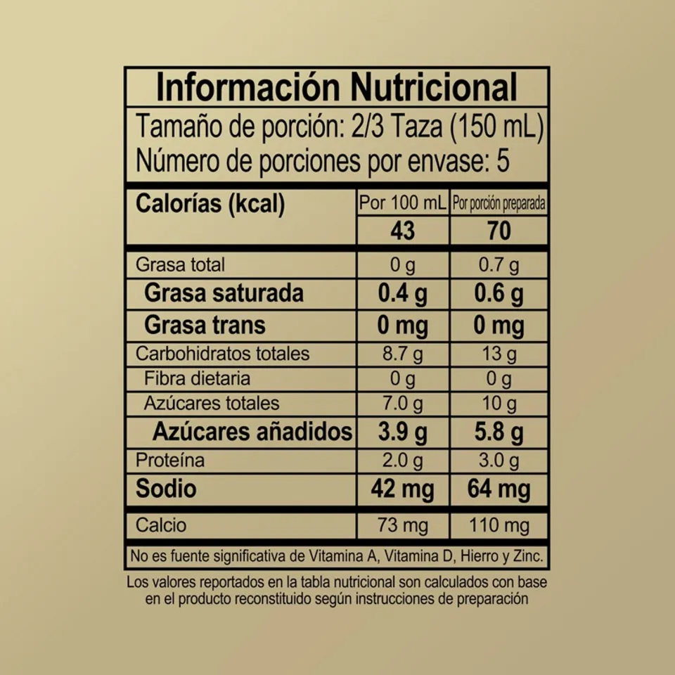 Los valores reportados en la tabla nutricional son calculados con base en el producto reconstituido según instrucciones de preparación