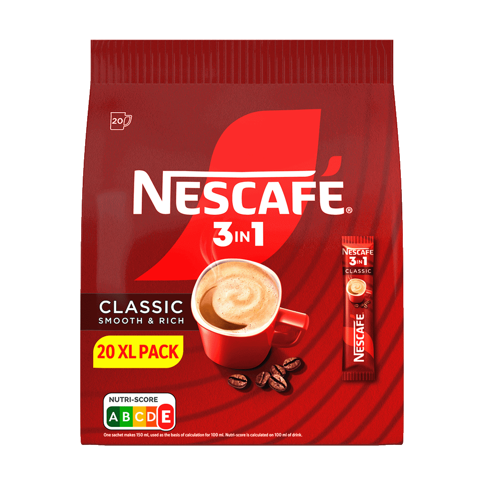 Objavte chuť kávy NESCAFÉ® 3v1 Classic – dokonalú harmóniu kávy s cukrom a jemne mliečnou chuťou. Základom NESCAFÉ® 3v1 sú starostlivo vybraná, odborne stredne pražená zmes vysoko kvalitných kávových zŕn Robusta. Dokonale vyvážený pomer ingrediencií zaistí, že behom chvíľky získate lahodne bohatú šálku kávy s výraznou arómou.