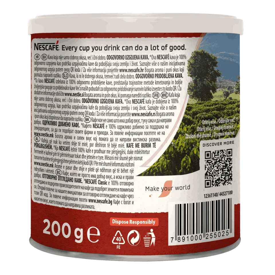 Dodajte 200 ml tople vode. Nema potrebe kuhati vodu do vrenja – dovoljno je da bude vruća! Uštedite energiju dok uživate u napitku NESCAFÉ®.