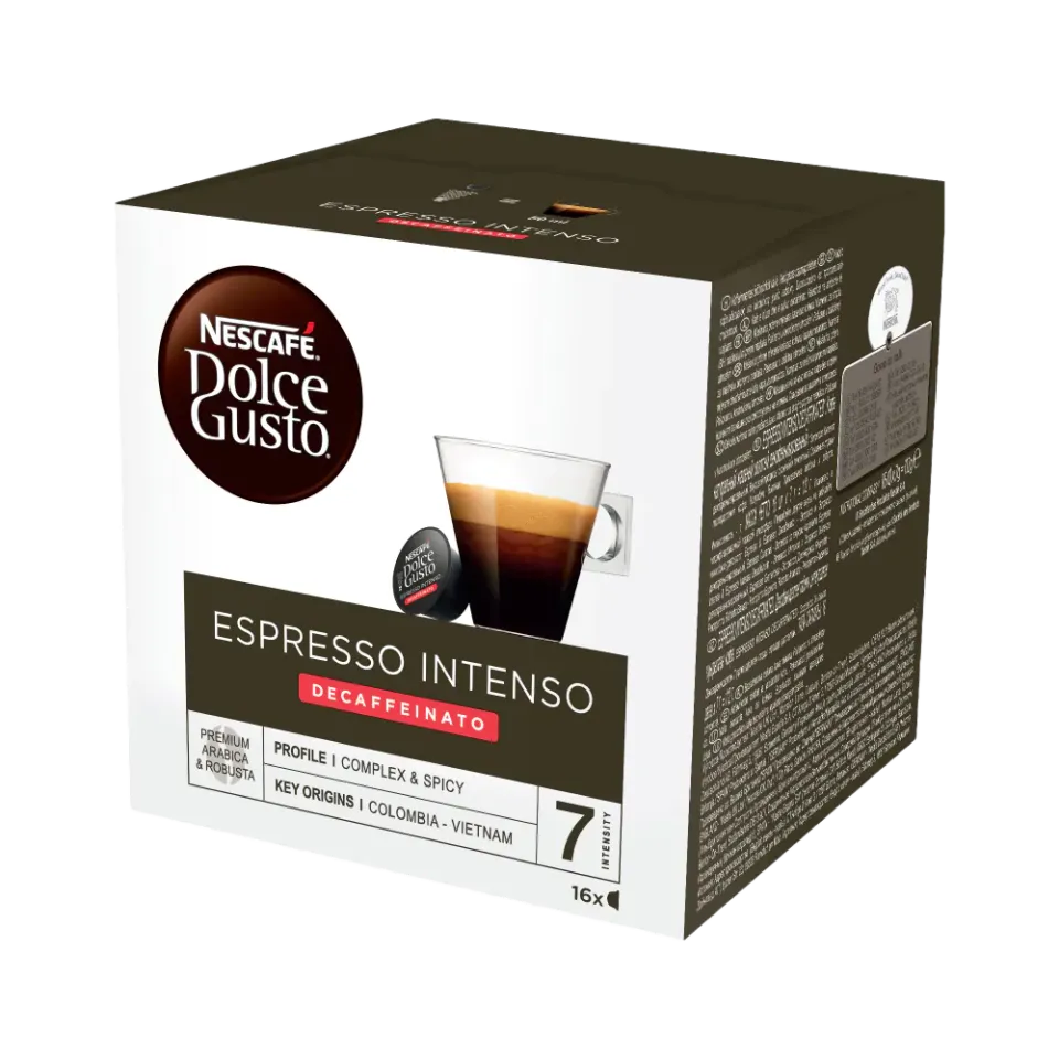 Un caffè decaffeinato può essere anche armoniosamente intenso. Se sei alla ricerca di una tazza corposa e audace senza caffeina che non rinuncia al gusto dell'originale, allora il nostro NESCAFÉ® Dolce Gusto® Espresso Intenso Decaffeinato è quello che fa per te. Perfetto da concludere in bellezza i pasti!