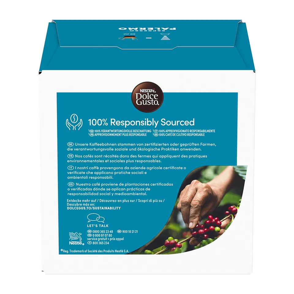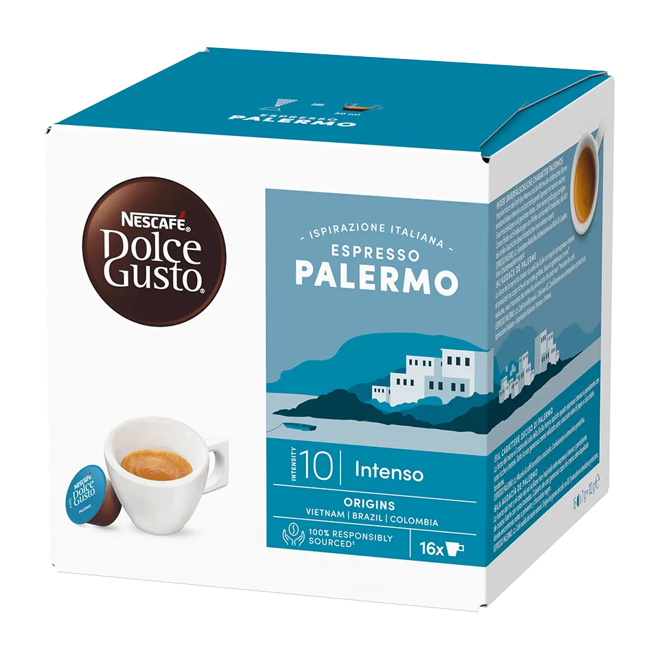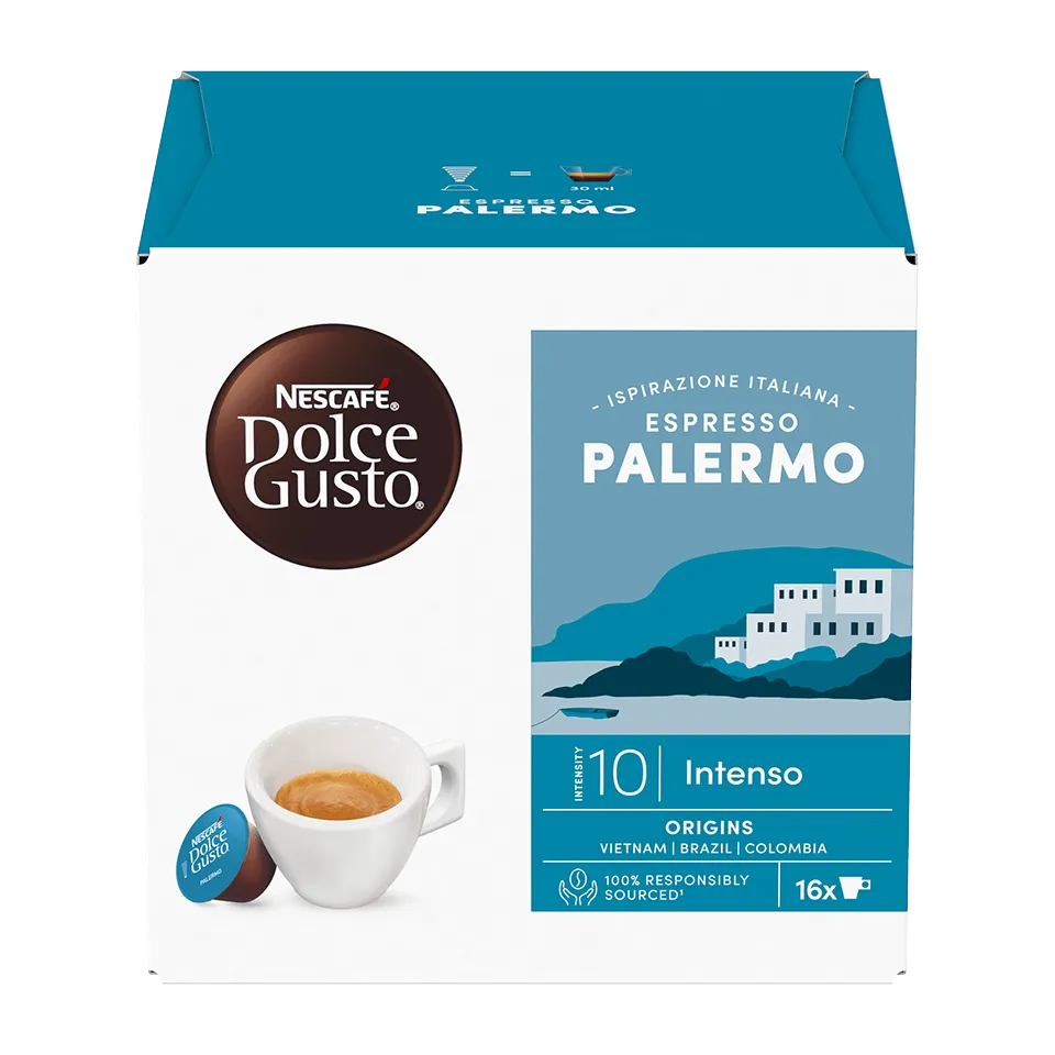 NESCAFÉ® Dolce Gusto® Espresso Palermo nasce da una speciale selezione di Arabica e Robusta, realizzata dai nostri coffee creator per un espresso dallo stile unico.