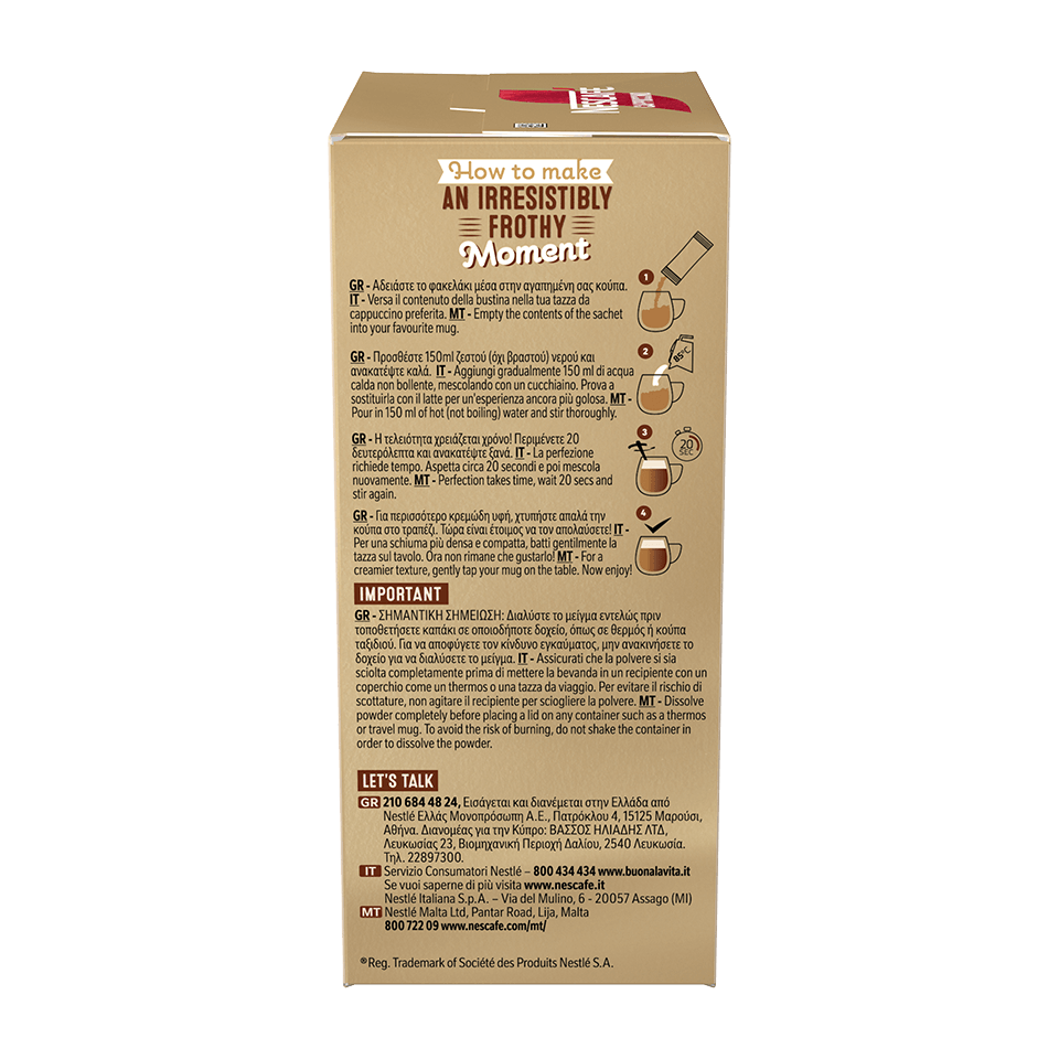 Aggiungi 150ml di acqua calda non bollente. Non è necessario che bolli - l'importante è che sia calda! Risparmia energia quando gusti il tuo Nescafé®