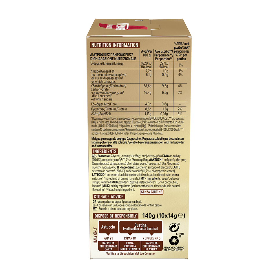 ** 1 porzione = 1 bustina (14 g) + 150 ml di acqua. La confezione contiene 10 bustine monoporzione.