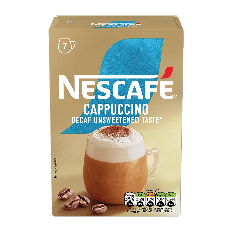 If you fancy a high quality cappuccino but would prefer a decaf drink with a less sweet taste, sit back with a NESCAFÉ® Gold Cappuccino Decaf Unsweetened. Bring the coffee shop experience to your home whenever you want a break, and relax with this delicious coffee shop-style drink.