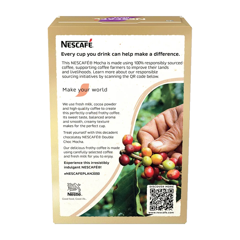 If you love the taste of the NESCAFÉ GOLD Double Chocolate Mocha but fancy something even more chocolatey, try the NESCAFÉ GOLD Double Choc Mocha. The NESCAFÉ Double Choc Mocha is a twist on the classic mocha and contains even more drinking chocolate in every delicious sip. This NESCAFÉ Double Choc Mocha is combined with high-quality coffee for a coffee-shop-style drink that you can enjoy whenever you fancy.
