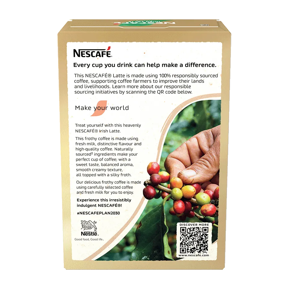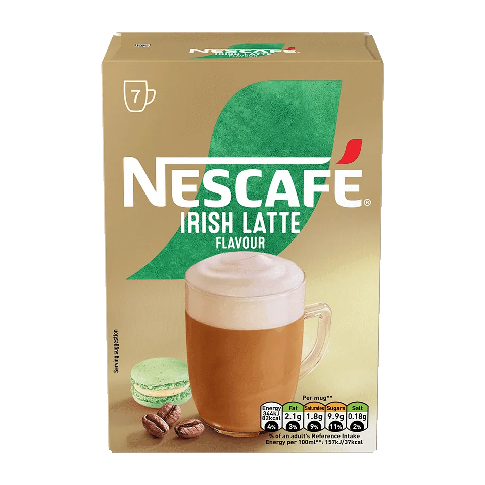 Try this delicious twist on a regular latte. Our NESCAFÉ GOLD Irish Latte is a deliciously milky coffee with a creamy liquor tasting flavour in every sip. Each cup is an expertly crafted combination of British milk, a blend of carefully roasted coffee beans.