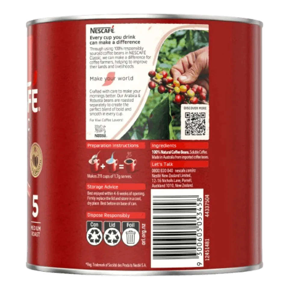 Start every day the right way - with the first few sips of this classic. Let the intense taste of NESCAFÉ® Classic instant coffee awaken your mind and body to new opportunities as the rich aroma of this distinctive blend unfolds.