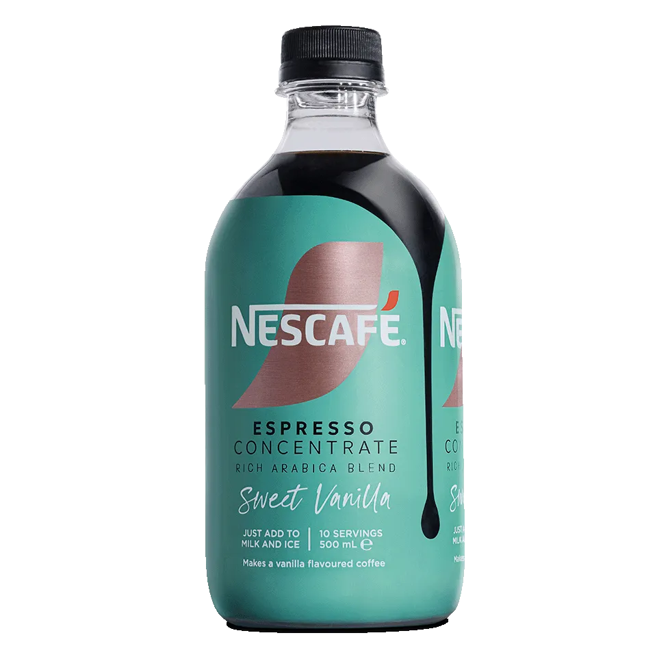 Start with ice, add cold milk or water, then pour 50mL of NESCAFÉ Espresso Concentrate Sweet Vanilla on top. Stir to create a café-inspired vanilla coffee – no espresso machine needed.