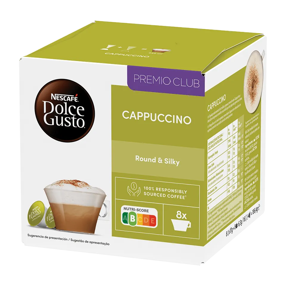Um expresso intensamente delicioso, preparado com uma mistura de grãos Arábica e Robusta de qualidade superior, em cápsulas que contêm a receita perfeita para aquela espuma de leite tão característica. É o Cappuccino NESCAFÉ® Dolce Gusto®, um tributo ao clássico italiano, tão apreciado no mundo inteiro.