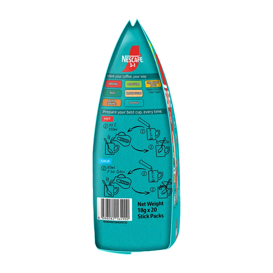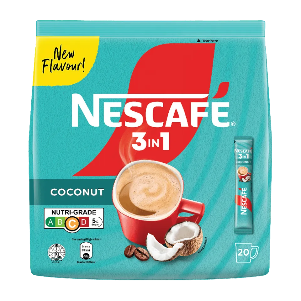 Savour the signature taste of NESCAFÉ® with a smooth blend of medium-dark roast coffee, elevated with the delightful aroma and nuttiness of coconut for a refreshing experience!