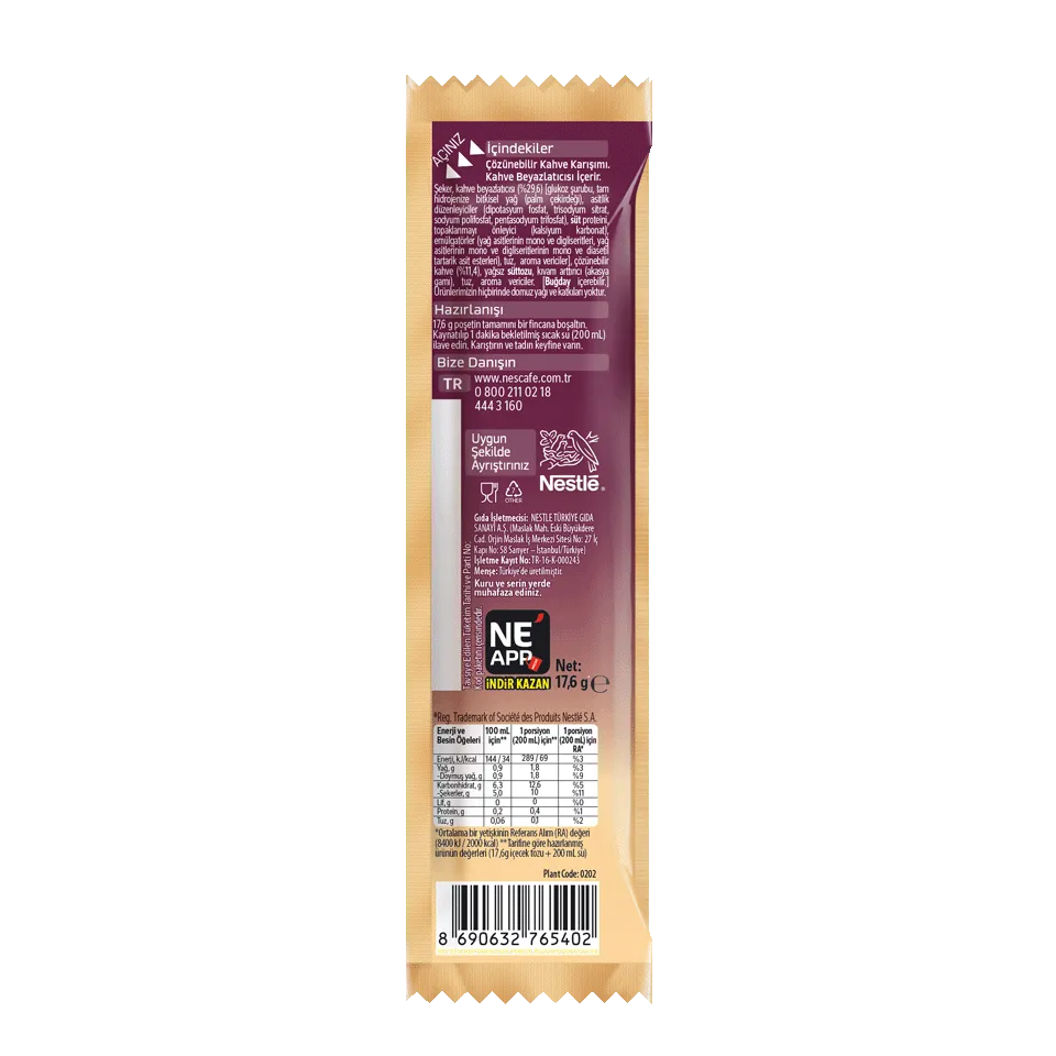 Premium kahve çekirdekleri, NESCAFÉ®'nin zengin aromalarını ve cesur tatlarını geliştirmek için ustalıkla kavrulur, süt tozu ile karıştırılarak NESCAFÉ® 3ü1 Arada Gold lezzeti oluşturulur. Nereye giderseniz gidin mükemmel bir fincan kahve hazır.