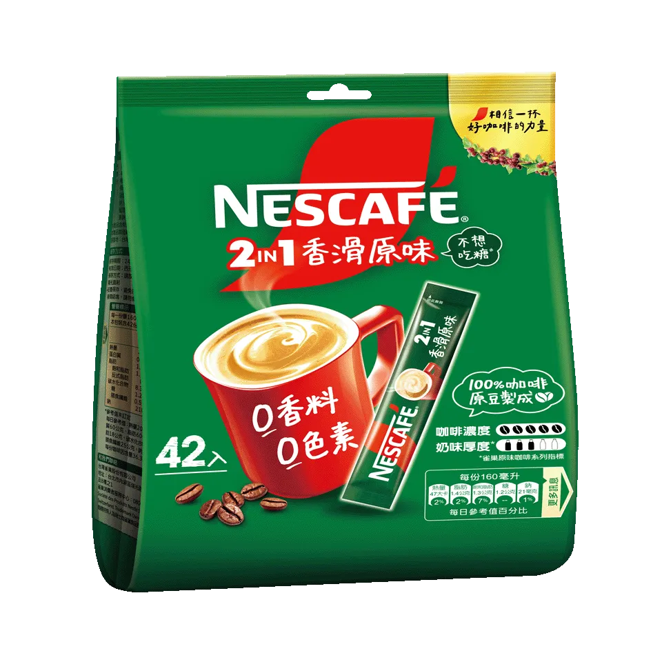 Choose NESCAFÉ 2in1 coffee and enjoy a white, unsweetened coffee in an instant*, using one of our single serve coffee sachets. Each NESCAFÉ 2in1 sachet contains both coffee and milk, making it easy to enjoy a delicious coffee whenever you fancy a break. So take some time for yourself, put the kettle on, and savour the delicious flavour of this instant coffee. Why not also pop a sachet in your bag so you can enjoy a mug in the office? Low sugar when prepared for an unsweetened taste