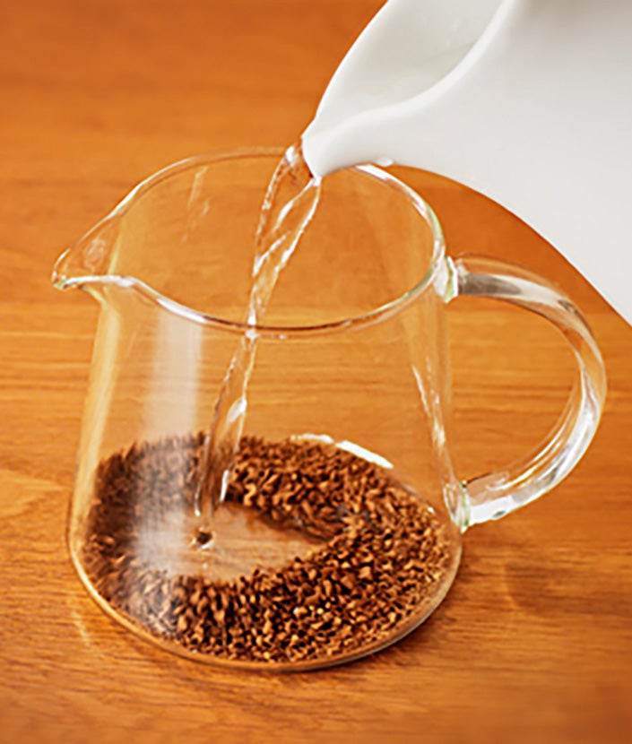 В іншій склянці розчиніть NESCAFÉ® Класік чи NESCAFÉ Gold® у 200 мл гарячої води (~ 80 ° C, просто почекайте, поки з’являться маленькі бульбашки. Не потрібно доводити до кипіння, так Ви заощадите на електроенергії).